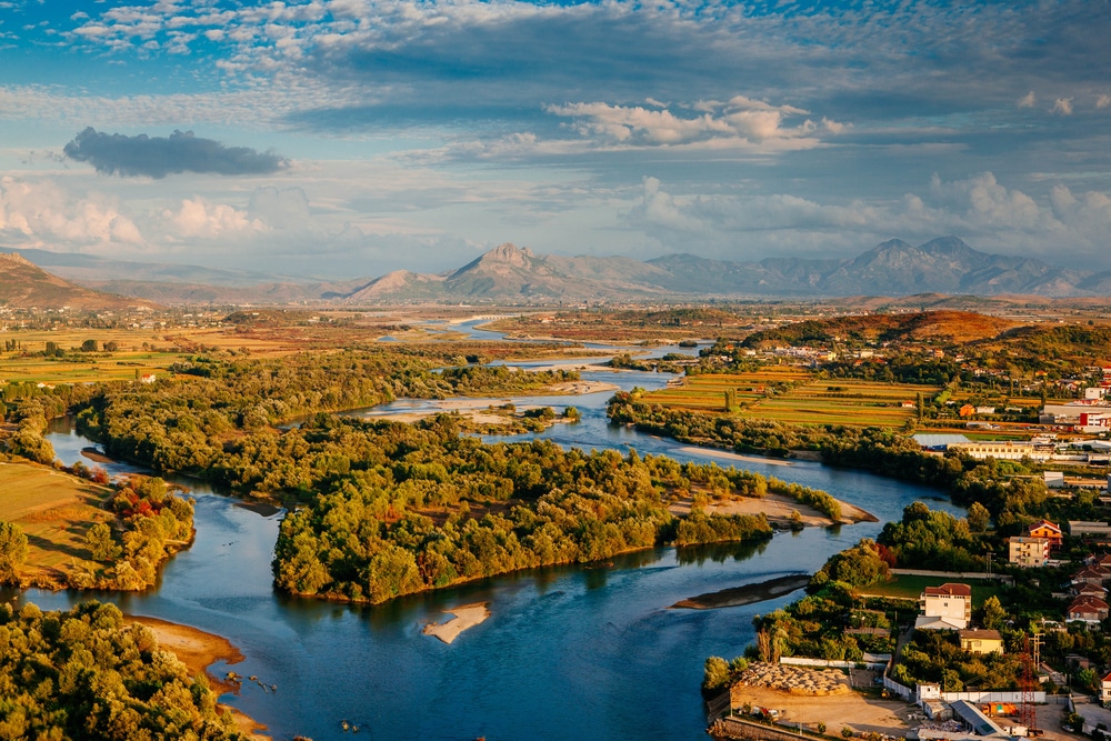 Northern Albania is characterized by impressive natural landscapes. These include the Bojana Buna Delta Nature Reserve, the mighty Lake Shkodra, the Mat Gorge in the north of Lac, the cliffs of Kepi i Rodonit and the lagoon landscape of Patok. One of the tourist highlights of a trip through Albania is a visit to the town of Kruja, which is located at the foot of the Skanderbeg Mountains. Kruja Castle is considered a national shrine by many Albanians. The so-called clock tower is its landmark.