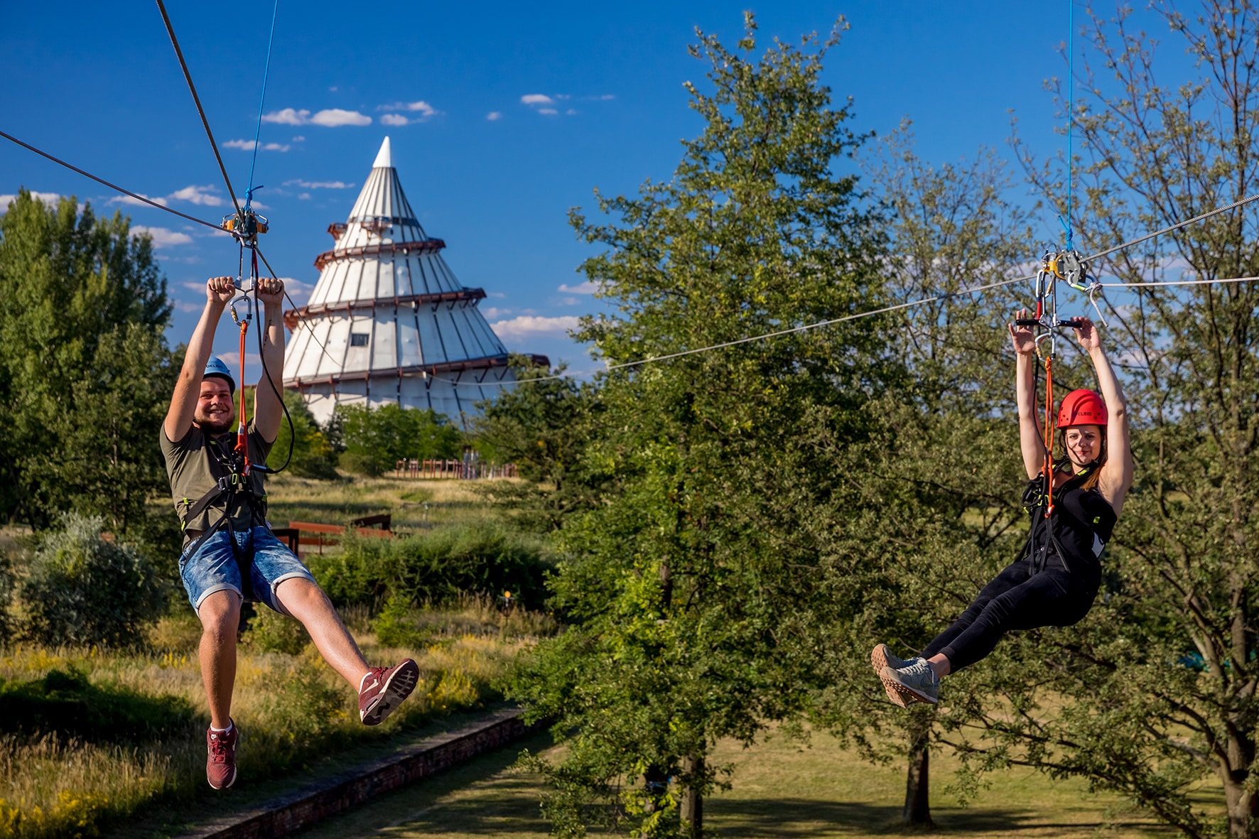 The most adventurous is in the Elbauenpark Magdeburg. The Millennium Tower towers above the almost 100-hectare amusement park. At 60 meters, the wooden tower is the tallest structure of its kind. In the tower, the secrets of 6,000 years of human history are revealed, and the exhibition invites you to touch and try things out. From the highest level there is a spectacular view. It gets even more exciting when Magdeburg visitors race down from here on the giant ElbauenZip zip line.
