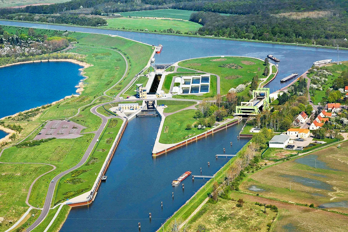 A very special destination is the boat trip to the waterway crossing. The Mittelland Canal flows through Europe’s largest steel structure here. In the midst of ancient floodplain forests, mighty locks and lifts were built so that the most important North German waterways can cross. The Mittelland Canal flows through the world’s longest trough bridge over the Elbe.