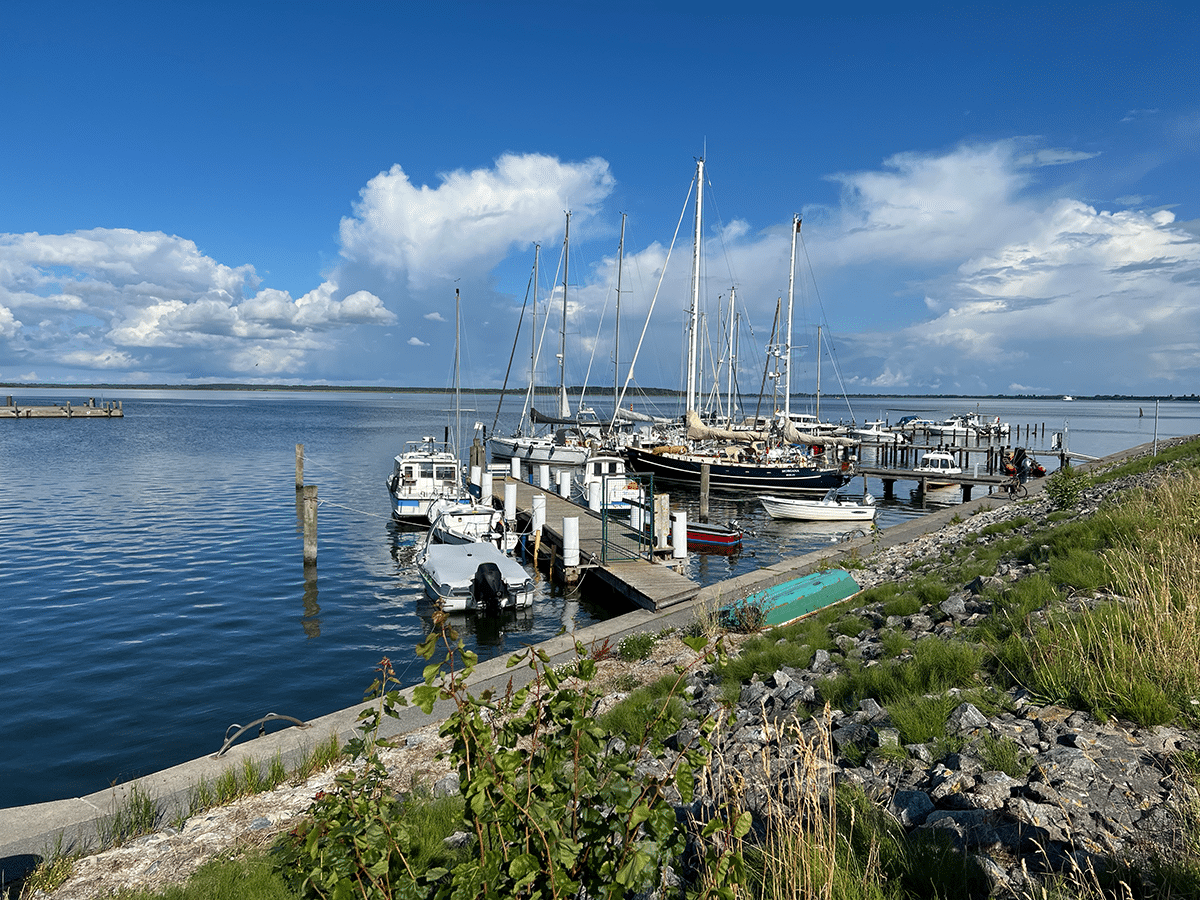 Anreise per Fähre nach Vitte, Spaziergang durch den Ort und erste Eindrücke sammeln. Leichte Radtour Richtung Neuendorf, Abendessen mit Blick auf die Boddenlandschaft.