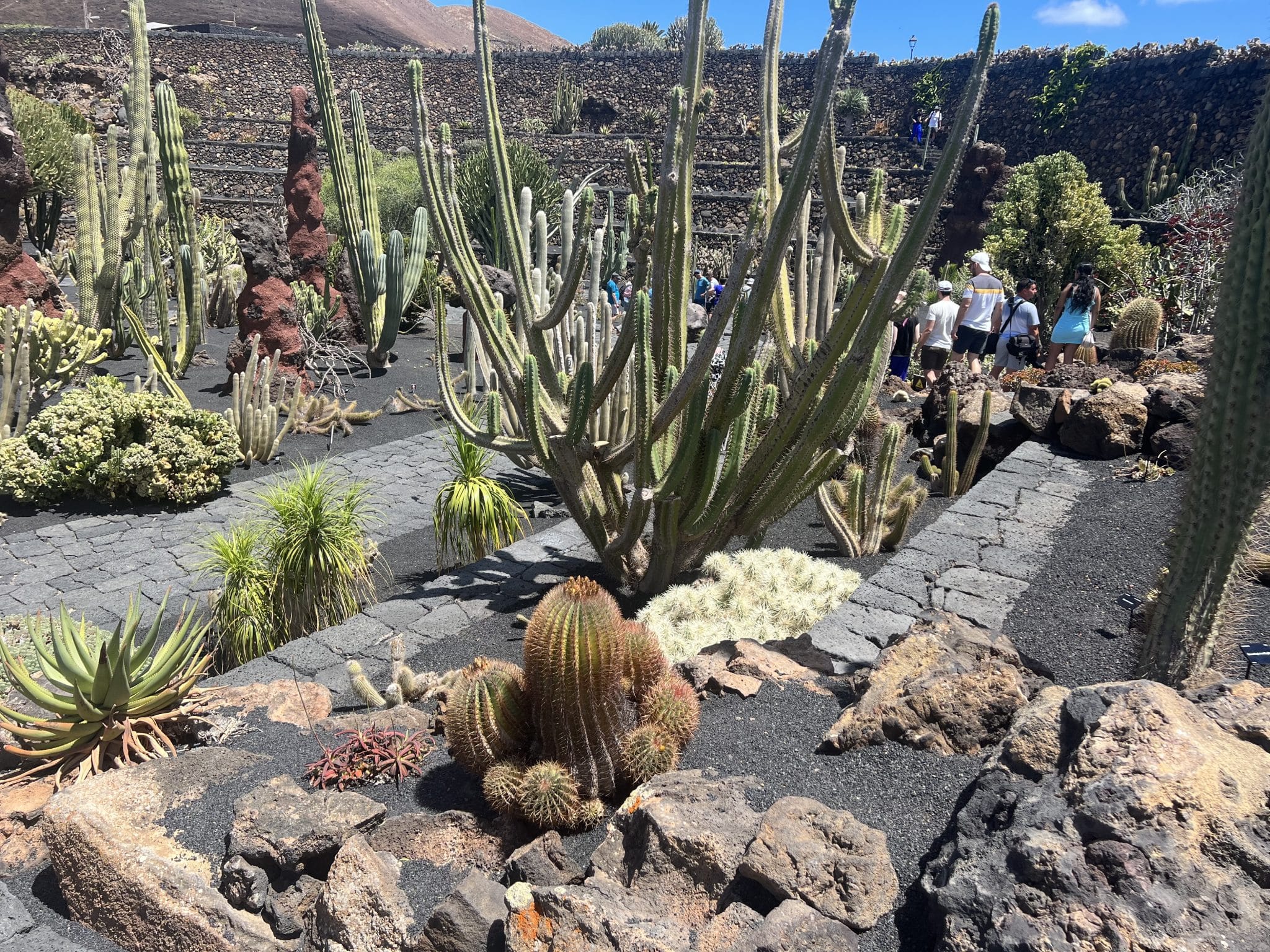 Jardin de Cactus: Im weiten Kessel eines ehemaligen Steinbruchs legte man nach den Plänen von César Manrique einen Kaktusgarten an. Der Jardin de Cactus wurde 1990 bei Guatiza eröffnet. Auf mehreren Etagen inmitten von 1420 verschiedenen Kakteen und anderen Wüstenpflanzen können die Besucher spazieren gehen. Hohe Steinsäulen und tiefschwarze Lavasteinchen verstärken die Wirkung dieses Ambiente – es wirkt wie eine fremde Welt.